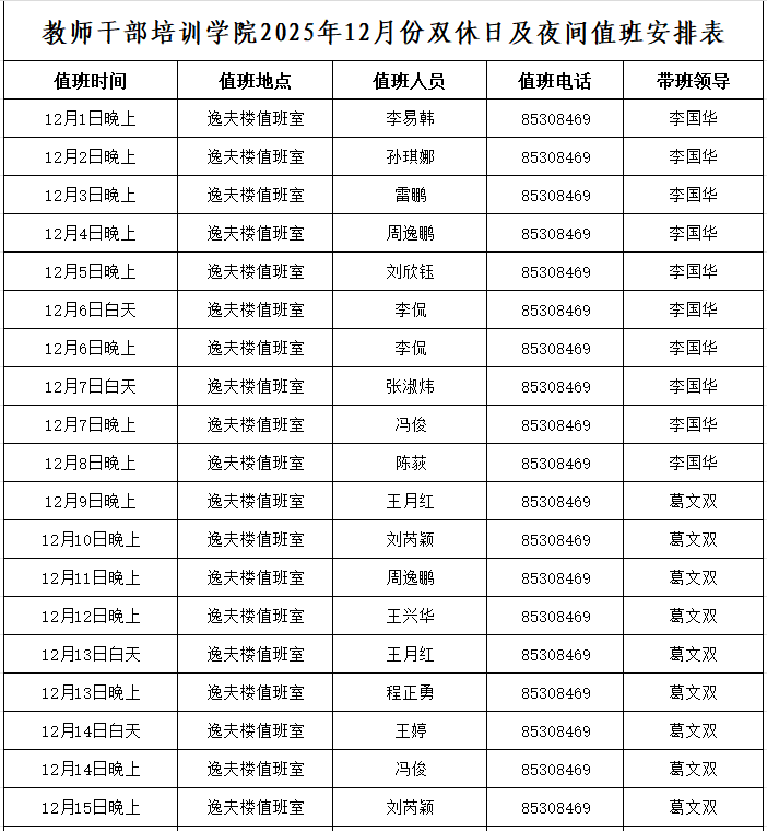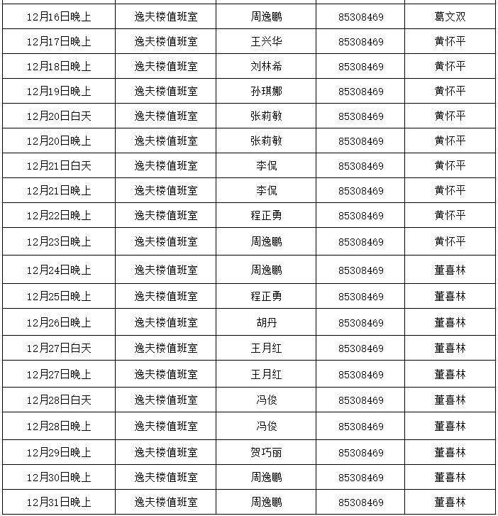 红桃视频 2025年12月份双休日及夜间值班安排表