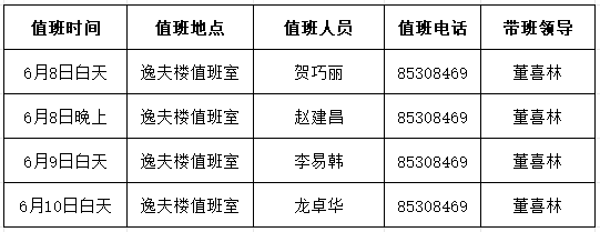 4.值班时间:上午:8:30—12:00 下午:14:30—5:30。