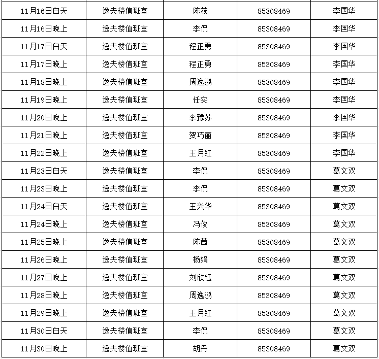 4.值班时间:上午:8:30—12:00 下午:14:30—17:30 晚上:17:30—21:30。