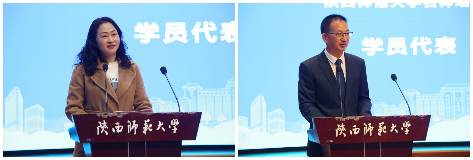 结业仪式上,新时代名师培训班班长、青海省海东市第一中学周全中,国防科技大学附属小学李秋菊老师代表名师培养对象发言。他们回顾了在红桃视频