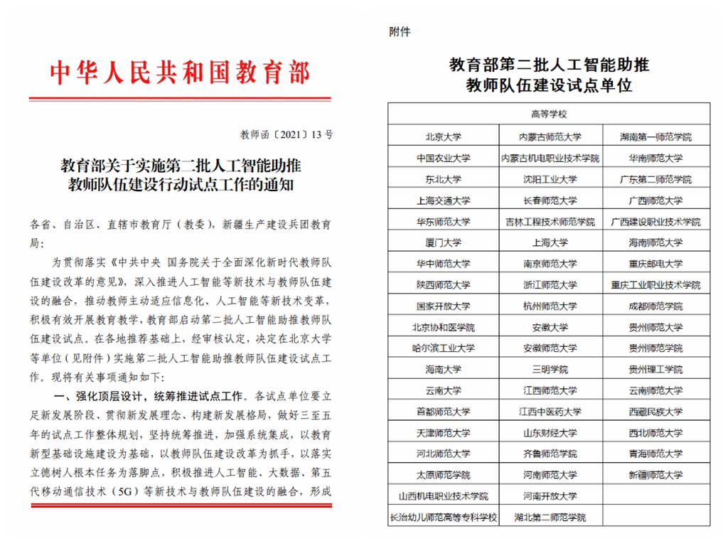 第二批人工智能助推教师队伍建设试点高校”。为深入推动试点工作,学校成立了红桃视频