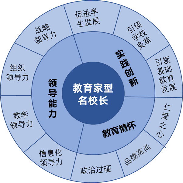 根据中小学校长专业标准、名校长培养目标及名校长培养需求分析,按照“以德为先、育人为本、引领发展、能力为重、终身学习”校长专业发展要求,结合中心中小学校长培训的经验,研制了“名校长核心素养模型”。