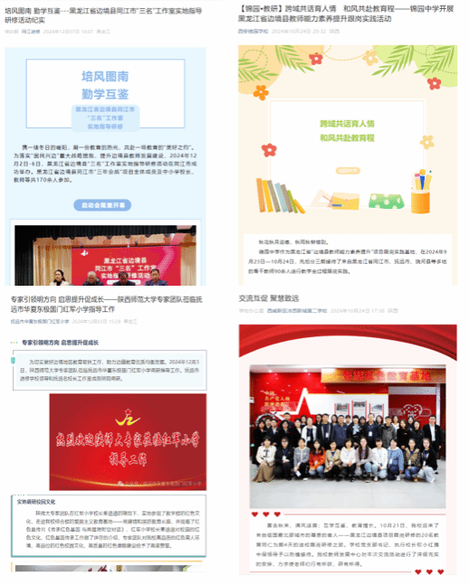 实施维度,构建起“理论学习+跟岗研修+红色研学+精准送教”的培训体系。在理论学习阶段,邀请知名高校专家、一线名师名校长名班主任和优秀教研员,从政治素养提升、教育理念更新、教学方式变革、信息化素养提升、校园文化建设与班级管理等方面开展交流研讨;在跟岗研修阶段,学员分层分类分批次走进西安市各个优质中小学及幼儿园,在校园管理一线、课堂实践一线、教学研究一线生动开展全周期浸润式学习;在红色研学阶段,发挥区位优势,在革命圣地延安开展丰富多样的红色教育,加强师德师风建设,坚定教育使命担当;在精准送教阶段,深入三所边境县各个学校,聚焦工作室建设和课堂教学两方面内容,通过推门听课、实地调研、示范指导等方式发现真问题、传授真方法,强化培训的双向互动。