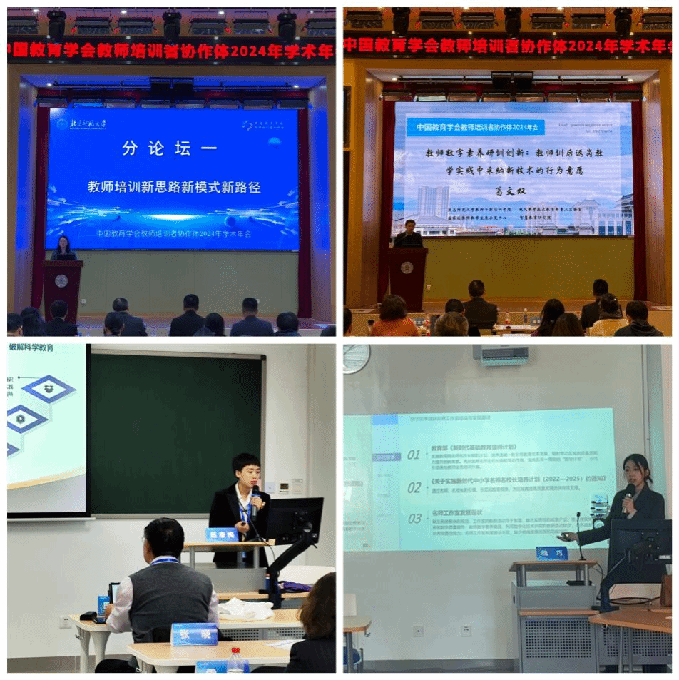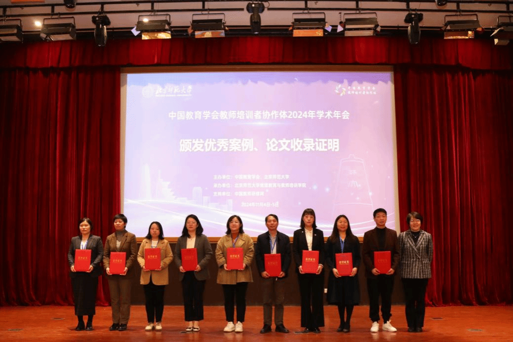 教育学部硕士研究生魏巧在分论坛作《数字技术赋能名师工作室建设与发展路径》教师培训优秀论文分享。以上成果分别被《中国教育学会教师培训者协作体2024年度实践案例集》《中国教育学会教师培训者协作体年会2024年度论文集》收录,并颁发荣誉证书。