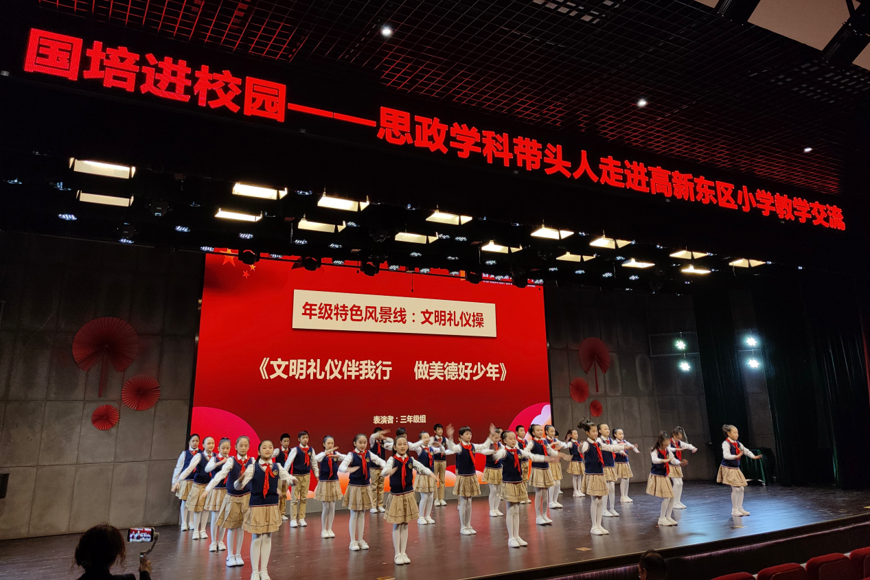 在西安高新东区小学跟岗期间,基地学校通过“一课一奏三展示”,即一节思政课、校管乐队演奏、通过思睿小剧场、红领巾宣讲团、年级风景线等形式展示交流,老师们纷纷表示学校真正将思政课大课堂有机融入“三个课堂”。“第一课堂”:王阳老师执教的《我们爱和平》是在陕西省基础教育指导委员会重大课题《总体国家安全观融入小学思政课教学指导》指引下探索实践的经典课例。以课题研究引领思政课实践很高端,也是思政课乃至所有课堂教学走向融合的必由之路。“第二课堂”:管乐队的精彩演奏、年级特色风景线:文明礼仪操《文明礼仪伴我行,做美德好少年》……红色教育校级社团、德育教育年级社团立体式绘就丰富多彩的全过程育人。“第三课堂”:学校引导学生去教材、课堂、生活中取材,自己成为编剧、导演、进行排练,通过“思睿小剧场”、“红领巾宣讲团”等为孩子们搭建展示的舞台,引领孩子们知行合一,做有理想、有本领、有担当的时代新人!